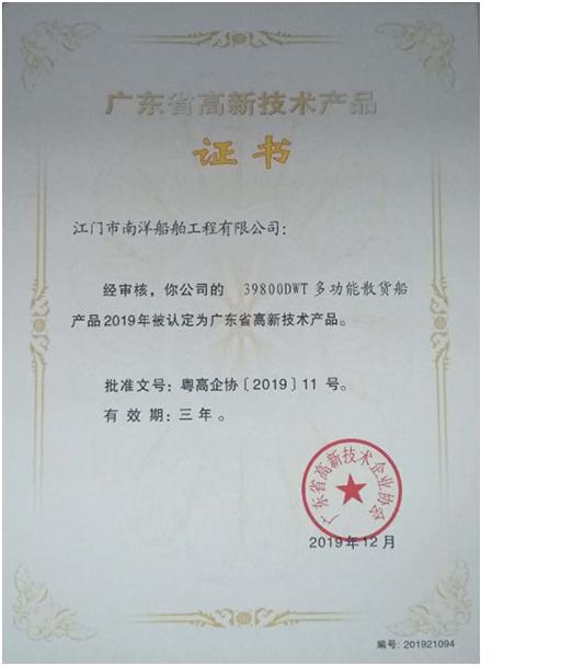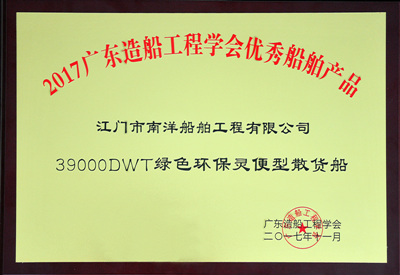 On Oct 13, 2016, JNS awarded Top 500 Manufacturing Enterprises of Guangdong 2016. ![]() On December, 2016, JNS B type 39800DWT green bulk carrier was recognized as high-tech product. |