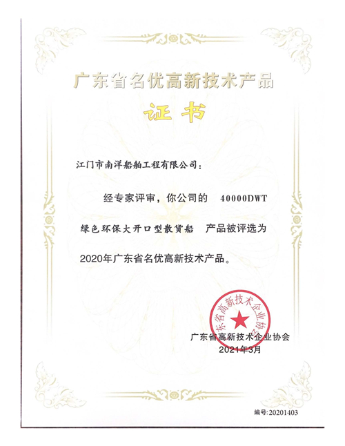 Qualification honorLocation: Homepage > About JNS > Qualification honor > 40000DWT High Tech Products