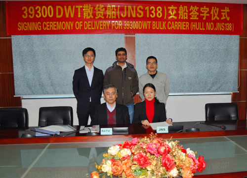 JNS, Jan.15--Nisshin Shipping Co., Ltd. today has taken delivery of the 39,300dwt bulk carrier (hull NO.JNS138) WESTERN LONDON , which is the first vessel built by JNS to be delivered to NISSHIN.