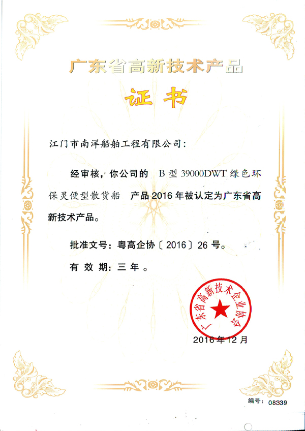 資質(zhì)榮譽(yù)您當(dāng)前位置: 首頁 > 關(guān)于JNS > 資質(zhì)榮譽(yù) > 《B型39000DWT綠色環(huán)保靈便型散貨船》被認(rèn)定為廣東省高新技術(shù)產(chǎn)品