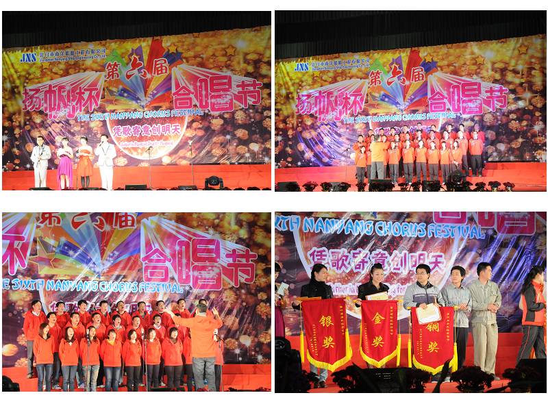 在當(dāng)晚的合唱比賽中,內(nèi)業(yè)課、技術(shù)市場(chǎng)聯(lián)隊(duì)、生產(chǎn)管理室分別以大合唱《大中國(guó)》、《相親相愛(ài)》、《共青團(tuán)員之歌》摘得了JNS第六屆揚(yáng)帆杯的金銀銅獎(jiǎng),生產(chǎn)部管理室的牛明輝奪得個(gè)人最佳指揮獎(jiǎng)。