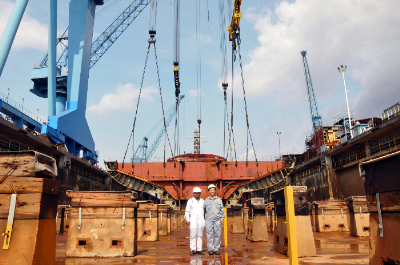2019423日上午,公司建造39300DWT散貨船JNS164開(kāi)始搭載。