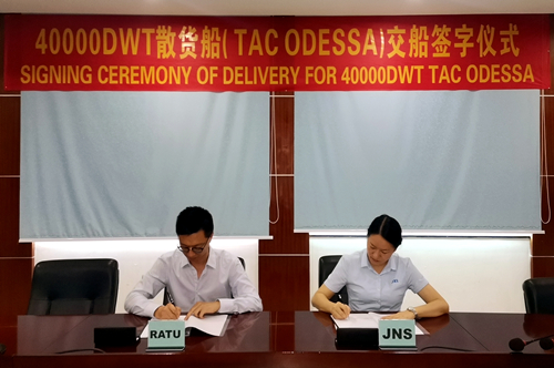 2021年5月25日,JNS179船TAC ODESSA號交接簽字,當天下午啟程遠航。同時,JNS179船是JNS建造的第八十艘。